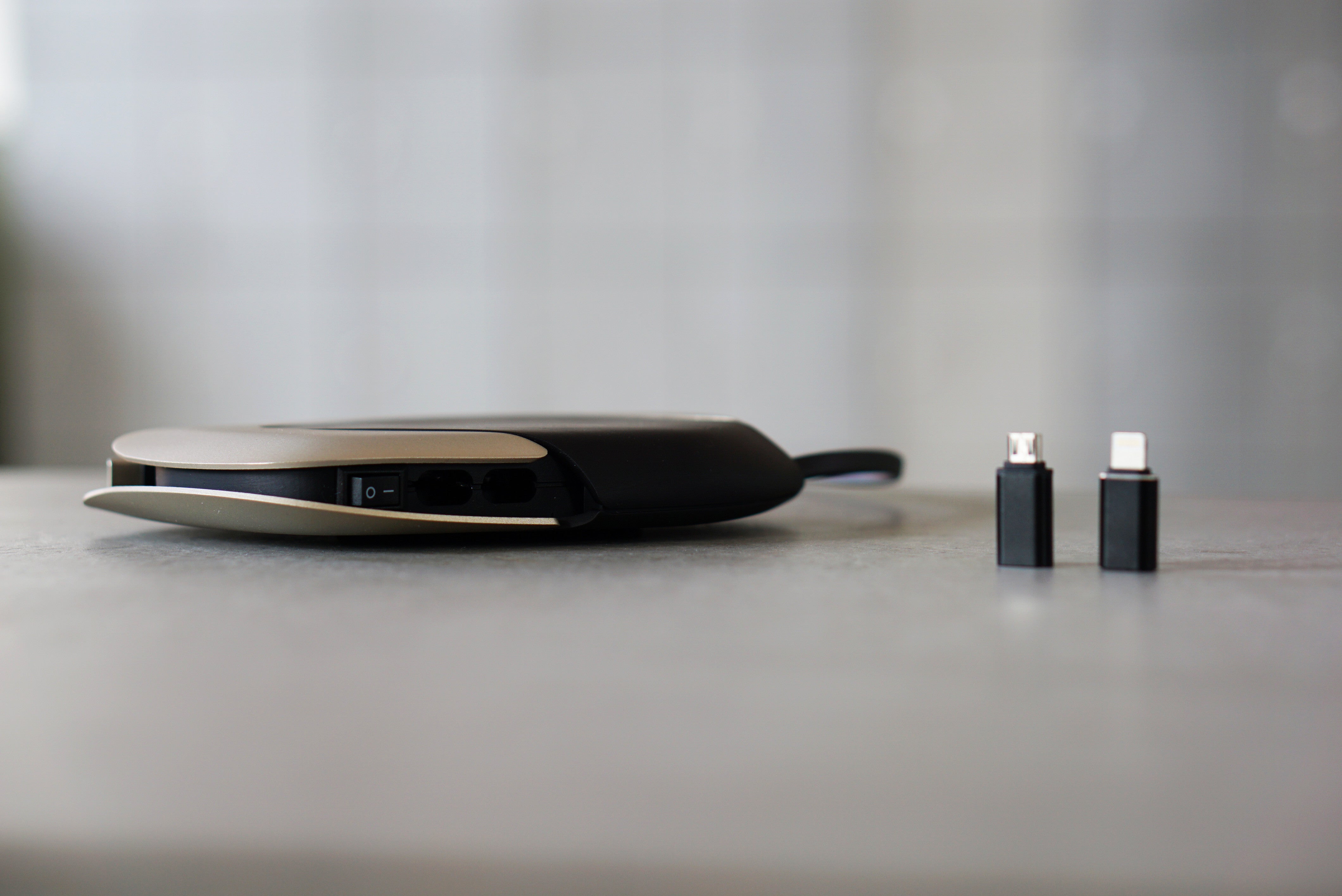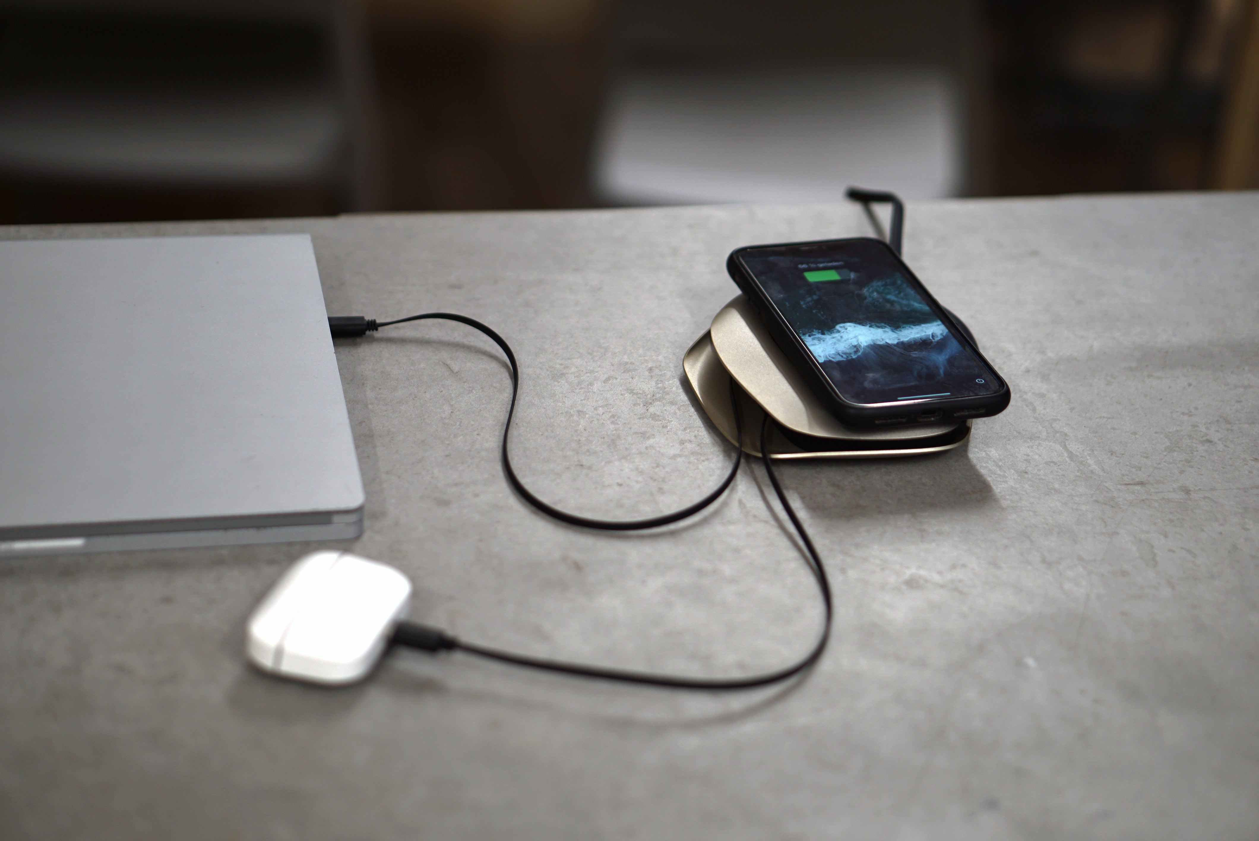 Adapters on the back of the charging station (USB-C to Lightning and USB-C to Micro-USB) ensure compatibility with a variety of devices.